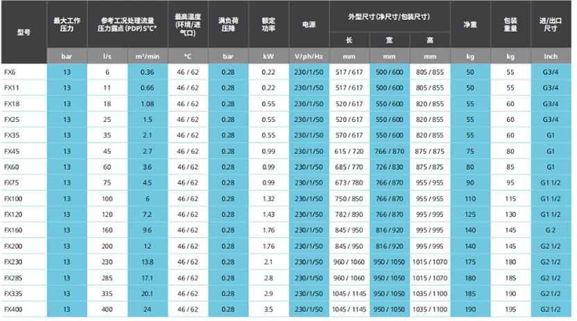 Una gama completa de secadores de aire y sopladores de doble torre, adecuados para diversas aplicaciones industriales.