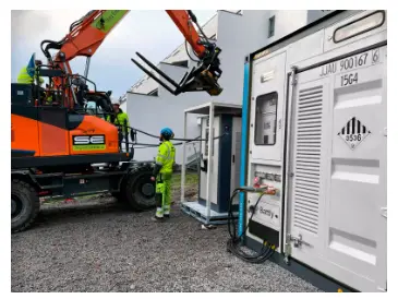Atlas Copco Fast Charger trabaja con el sistema de almacenamiento de energía en contenedor ZBC para alimentar una excavadora eléctrica