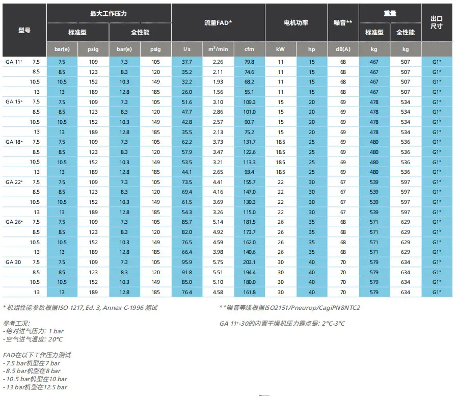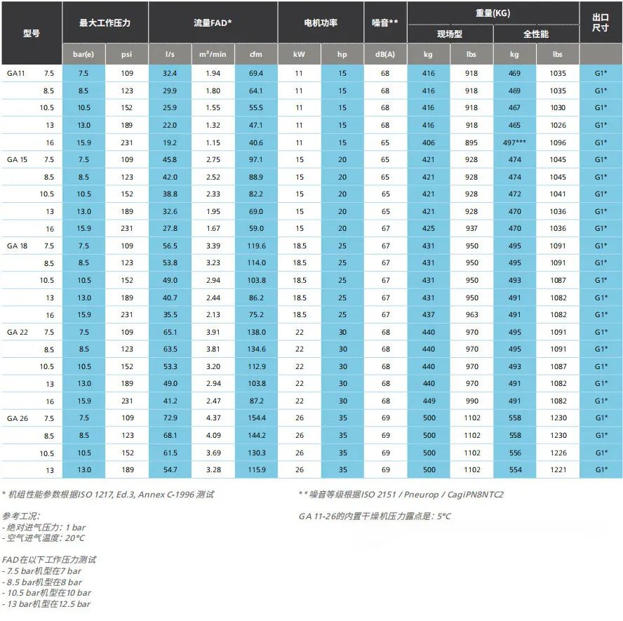 ·GA11-26 adopta un nuevo rotor y un motor de alta eficiencia IE2/IE3, que es duradero y eficiente.