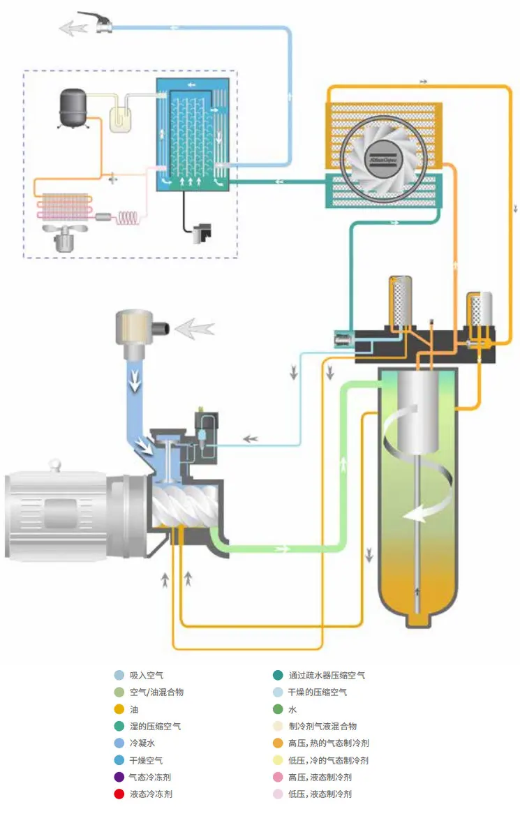 ·Ventilador de enfriamiento independiente, enfriador de alta eficiencia y secador incorporado con presión de punto de rocío de 5 ℃ para evitar mejor el condensado y la corrosión de las tuberías en la red de tuberías.