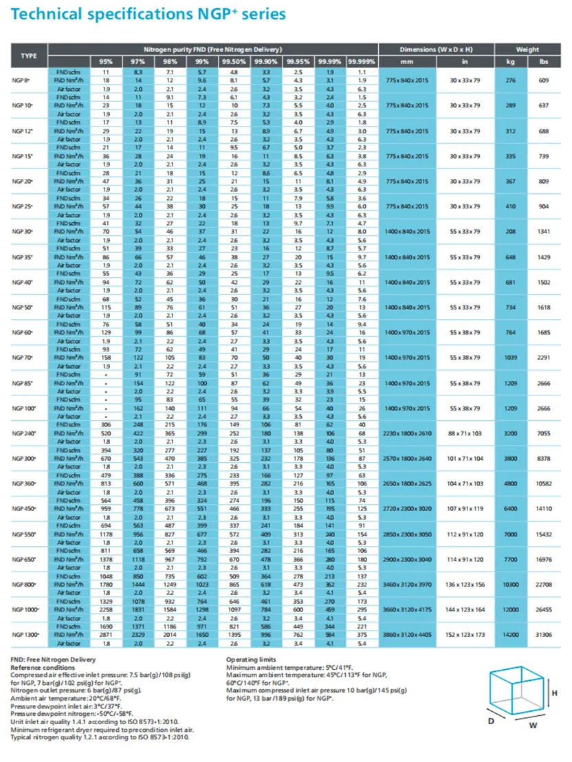 Fácil de instalar, listo para usar. Nuestros generadores de nitrógeno NGP con PSA brindan un flujo de nitrógeno de alta capacidad con la pureza que necesita. Adecuado para una amplia gama de aplicaciones.