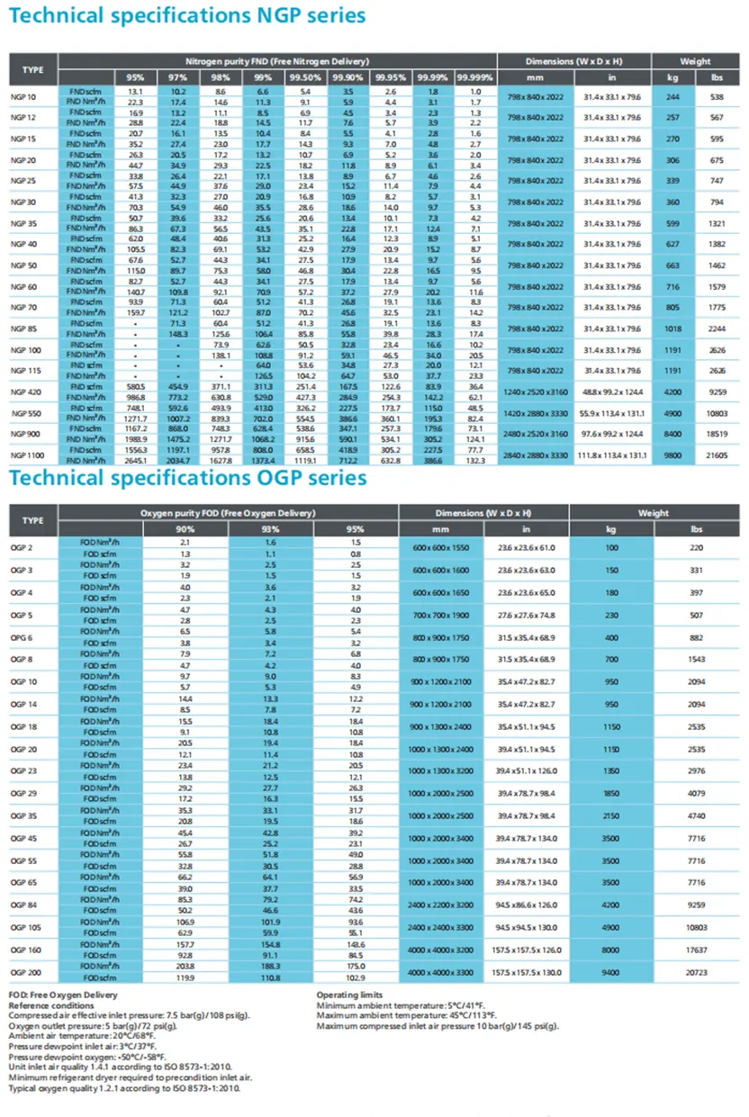 La tecnología PSA garantiza un excelente retorno de la inversión. Los tamices moleculares de carbono garantizan una alta pureza.
