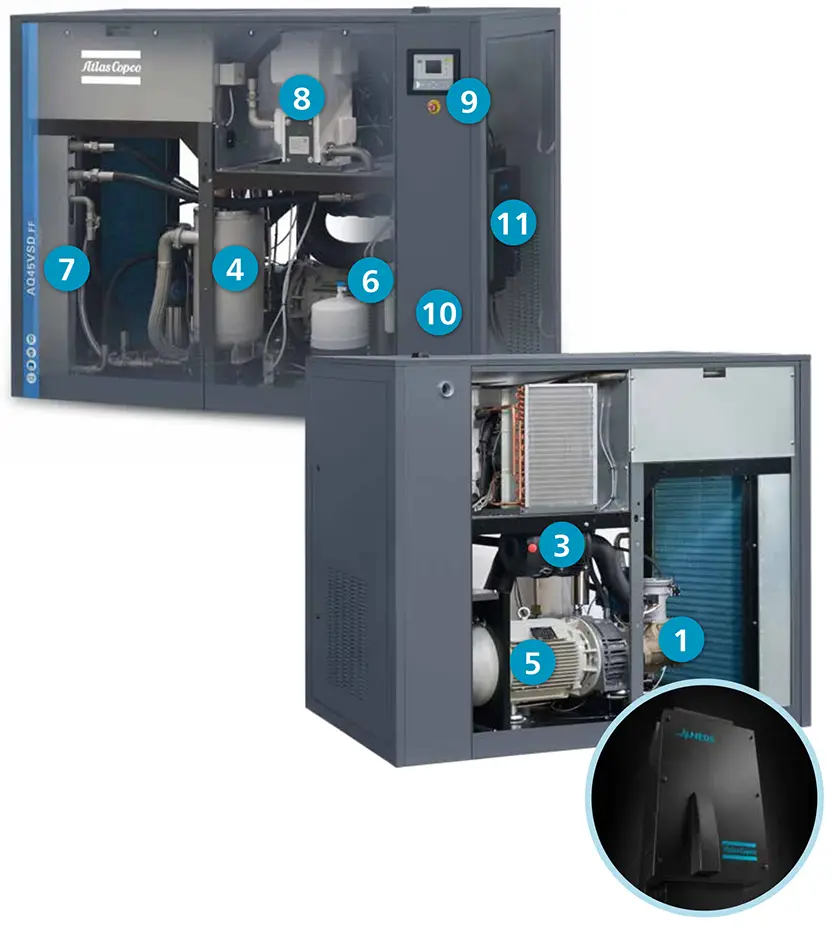 En Atlas Copco, estamos comprometidos a brindar soluciones de aire comprimido que cumplan o superen sus expectativas. El compresor de aire integrado VSD, sin aceite y lubricado con agua, hereda las décadas de experiencia de Atlas Copco en el diseño y fabricación de compresores sin aceite.