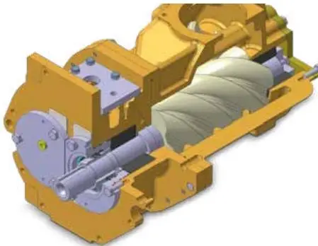 Rotores compuestos de polímero de alta resistencia y alta calidad con perfiles optimizados para una compresión eficiente. Las materias primas anticorrosión y altamente eficientes y la verdadera lubricación por pulverización de agua dan como resultado una vida útil más larga.