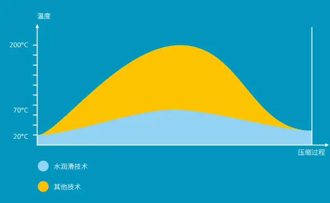 El consumo de energía del compresor representa más del 70 % del coste total del ciclo de vida, y la producción de aire comprimido consume más del 40 % de la factura eléctrica total de la planta. Para reducir el consumo de energía, Atlas Copco desarrolló el compresor de aire VSD lubricado con agua y sin aceite. mercado.